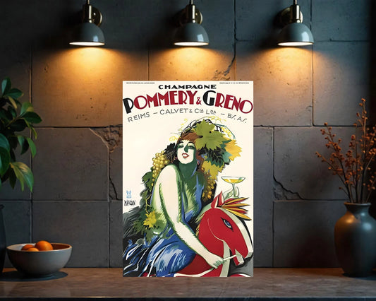 Champagne Pommery & Greno Vintage Sign- Heavy Metal Cafe & Bar Decor