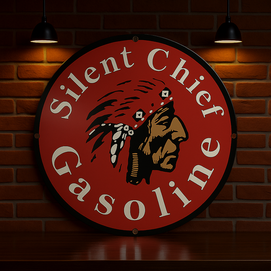 Sılıent Chief Gasoline Round Heavy Metal Sign – Garage & Man Cave Decor