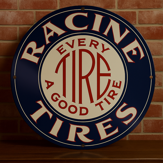 RACINE TIRES "Every Tire A Good Tire" Round Heavy Metal Sign – Garage & Man Cave Decor