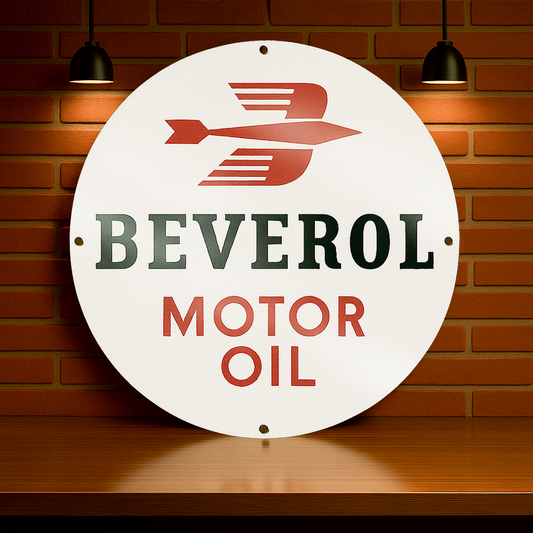 Beverol Motor Oil Sign – Heavy Metal Garage & Man Cave Decor