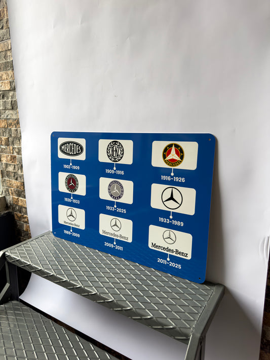 Mercedes Benz Logo Evolution – Large 60x40 cm Heavy Metal Sign – Garage Decor