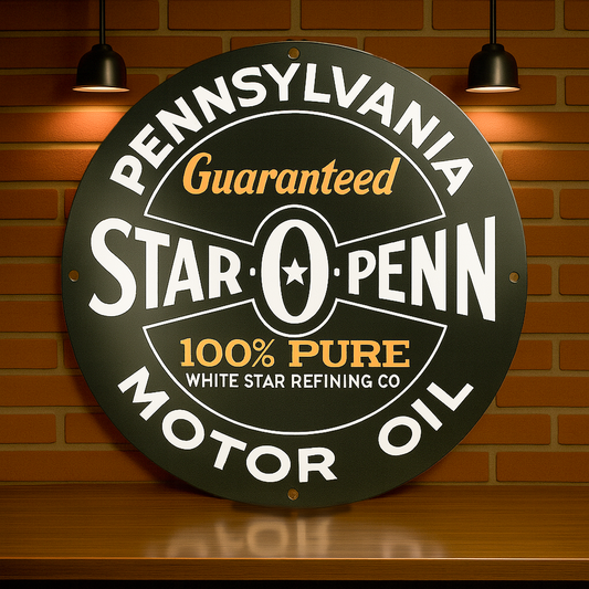 Star O Penn Motor Oil Sign – Heavy Metal Garage & Man Cave Decor