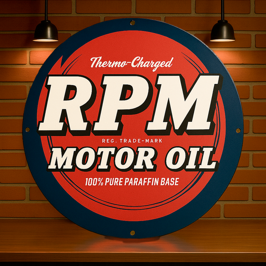 RPM Motor Oil Sign – Heavy Metal Garage & Man Cave Decor