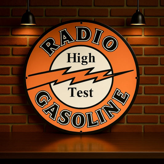 Radio Gasoline High Text Sign – Heavy Metal Garage & Man Cave Decor