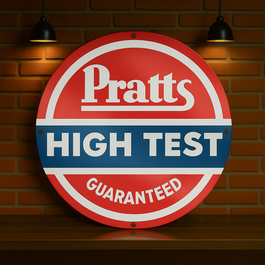 Pratts High Test Guaranteed Sign – Heavy Metal Garage & Man Cave Decor