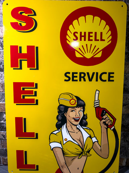 Shell Service Vintage Motor Oil Sign – Heavy Metal Garage & Man Cave Decor